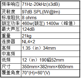 緊湊型兩路分頻系列,多用途箱體設(shè)計(jì),寬廣的覆蓋角度,1.35VC壓縮驅(qū)動(dòng)高音,多懸掛點(diǎn)容易吊裝,可調(diào)整水平與垂直覆蓋角度,12寸低失真高效率中低紙盆單元。