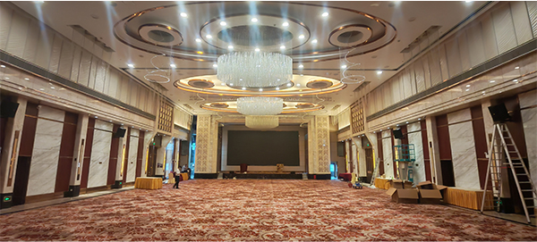 考慮到廣州珠江國際酒店宴會大廳空間大、活動類型多樣,我司專業團隊深入調研,采用線陣列音箱,均勻分布在宴會大廳四周,確保聲音能夠全面、均衡地覆蓋每一個角落,無論是前排還是后排的賓客,都能有清晰的聽覺體驗。同時,配備了專業的音頻處理設備,可根據不同活動場景快速調節音效。